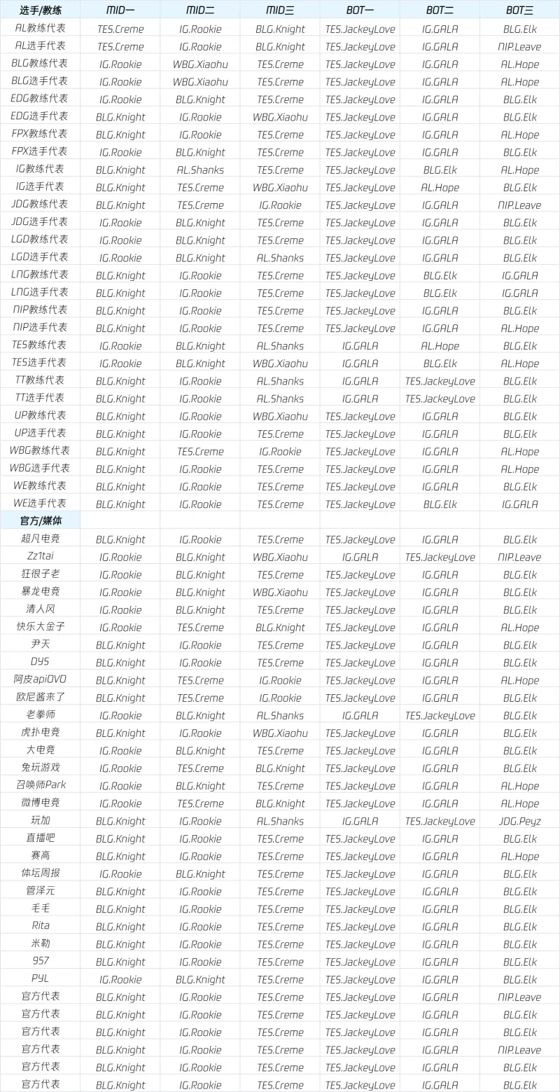LPL公布常规赛荣誉选票明细:共发放选票60张,有效选票60张
