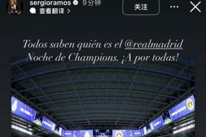 今日前皇马队长拉莫斯更新社媒,晒出伯纳乌欧冠主场照,为老东家加油助威。拉莫斯在社媒写道:“众所周知,今晚是属于皇马的欧冠之夜。为了荣誉放手一搏吧!”